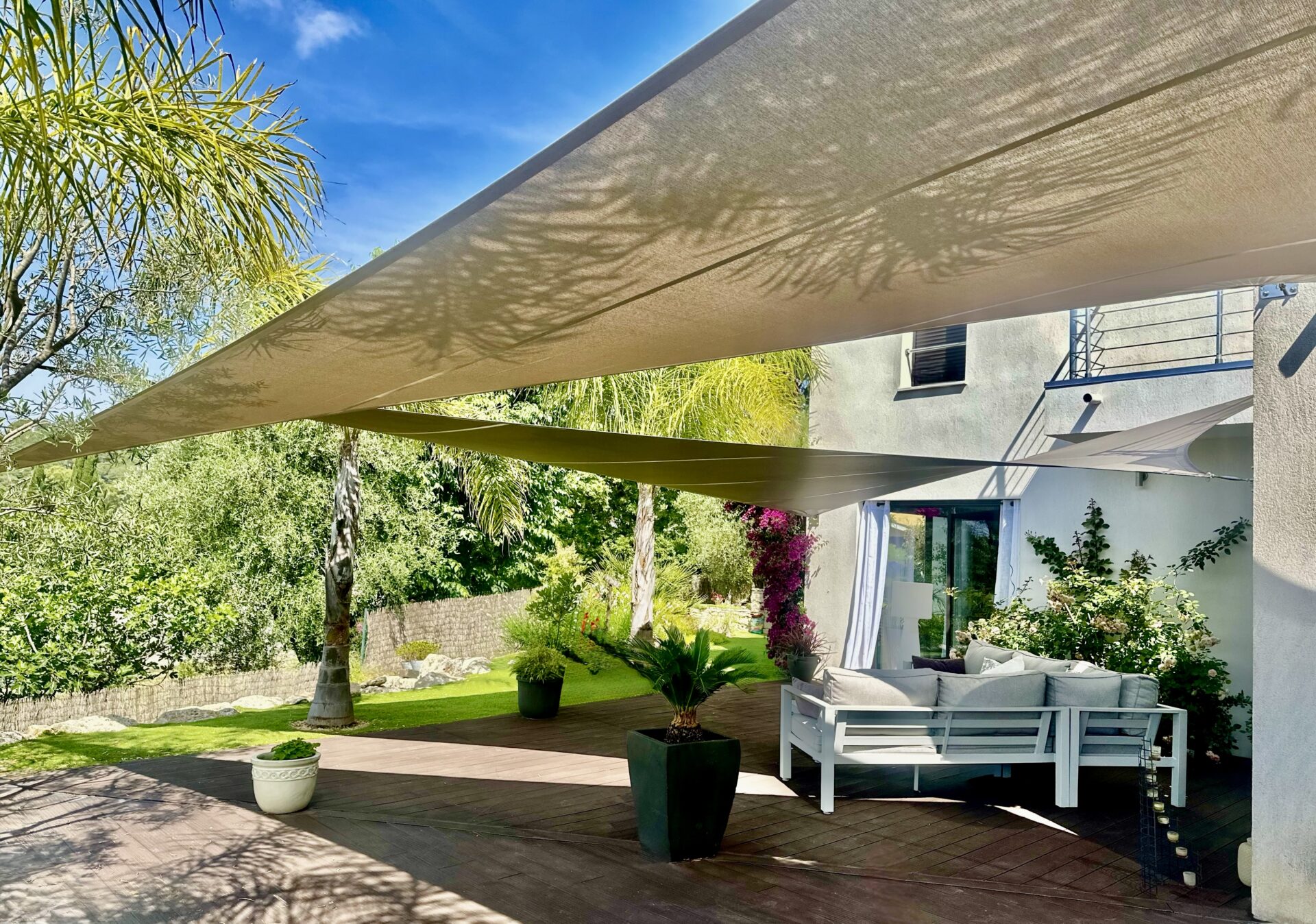 Des voiles d'ombrage conçues pour structurer votre jardin, créer des zones de fraicheur et offrir un véritable lieu de calme et de bien-être en plein air.